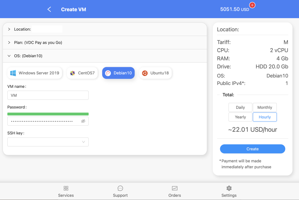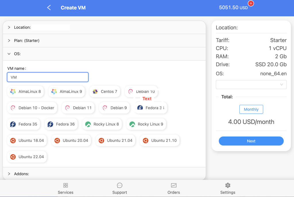 • Self-service portal (PWA application) for Cloud VM, PAYG IaaSbased, Pre-Paid VPS based on NoCloud Platform